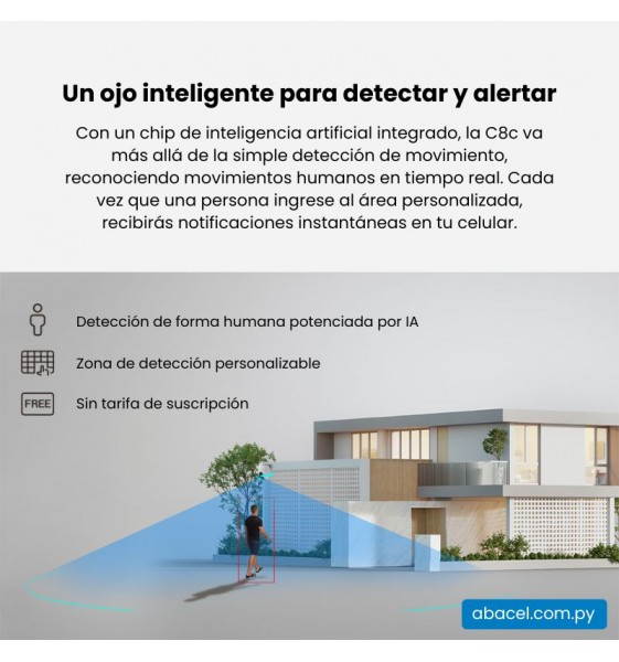 La cámara EZVIZ CS-C8c-R100-1K2WKFL es una solución de videovigilancia exterior que combina funcionalidad avanzada con un diseño robusto. Equipada con resolución Full HD 1080p, ofrece una cobertura panorámica de 360° mediante su lente motorizada, eliminando puntos ciegos y asegurando una vigilancia completa. Su tecnología de detección de formas humanas impulsada por IA permite identificar movimientos relevantes en tiempo real, enviando notificaciones instantáneas al dispositivo móvil del usuario. Además, cuenta con visión nocturna en color, defensa activa con sirena y luz estroboscópica, comunicación bidireccional y es resistente a condiciones climáticas adversas gracias a su diseño impermeable. La cámara soporta almacenamiento en tarjeta microSD de hasta 512 GB y es compatible con la plataforma EZVIZ CloudPlay para almacenamiento en la nube. También se integra fácilmente con asistentes virtuales como Google Assistant y Amazon Alexa, facilitando su control mediante comandos de voz.