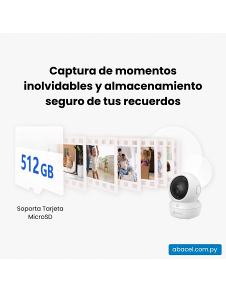 La H6c Pro también ofrece visión nocturna inteligente a color hasta 5 metros y en blanco y negro hasta 10 metros, asegurando imágenes claras incluso en condiciones de poca luz. Es compatible con tarjetas microSD de hasta 512 GB y con el servicio de almacenamiento en la nube EZVIZ CloudPlay, brindando opciones flexibles para guardar tus grabaciones.