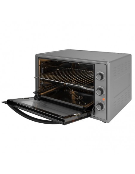 Permite regular la temperatura en un rango amplio de 120°C a 250°C, adaptándose a diferentes tipos de recetas como horneados suaves, gratinados, asados o preparaciones que requieren altas temperaturas.