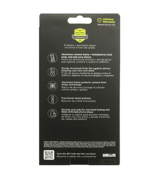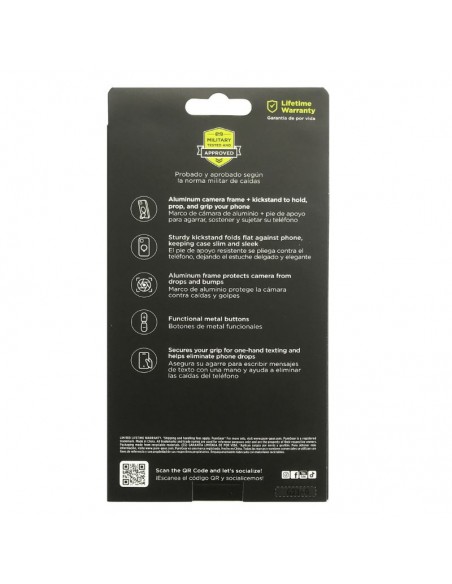 La combinación del marco de aluminio y el pie de apoyo no solo protege, sino que también permite agarrar, sostener y sujetar el teléfono con mayor comodidad, mejorando la estabilidad durante su uso.