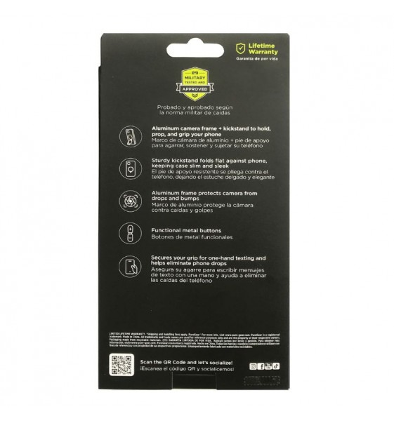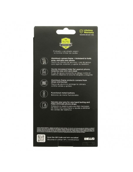 La combinación del marco de aluminio y el pie de apoyo no solo protege, sino que también permite agarrar, sostener y sujetar el teléfono con mayor comodidad, mejorando la estabilidad durante su uso.